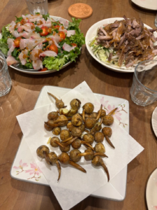 ここ数年、年に数回お邪魔させてもらっているご自宅の晩ごはん!!私の西条の実家と言ったら過言かもしれないけど、そのくらい居心地よく過ごさせてもらっているおうちのご飯。くわいという食べ物を初めて食べました。福山の方で有名らしく、味はジャガイモみたいな感じでした。奥に写っているサラダもめちゃくちゃおいしかったです。