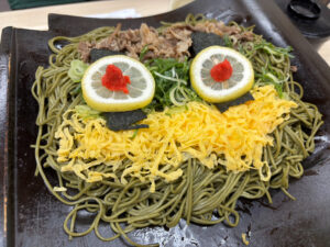 いつか食べたいと思っていた瓦そばをやっと食べることができました!!!!良く焼いて麺がぱりぱりになっているのがおいしかったです。最初にでき来た時に顔みたいで可愛かった(笑)